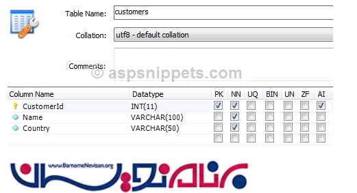 برای شروع ابتدا باید در MySQl یک جدول ایجاد کنیم، مانند زیر: