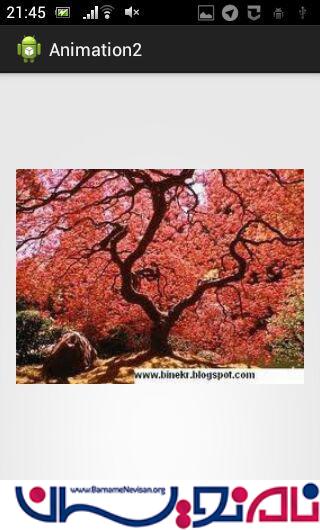 در کد بالا از یک آلفا استفاده می کنیم، که اگر 1 باشد به طور کامل مات می شود، و اگر آلفا 0 باشد تصویر شفاف خواهد شد، animation.setFillAfter(true) اگر این true باشد برای معرفی یک تاخیر بین انیمیشن ها است که تصویر دوباره پش از محو شدن ظاهر شود.