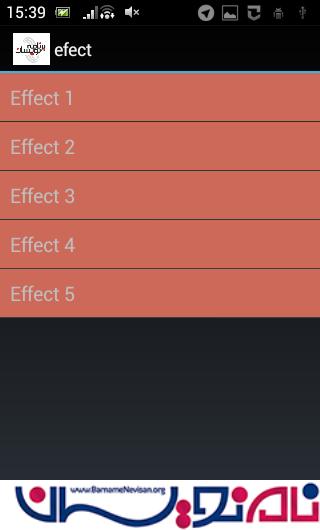 در مرحله ی بعدی به activity دوم می رویم که افکت ها را در آنجا قرار داده ایم که با زدن هر کدام تصویر ما تغییر می کند.