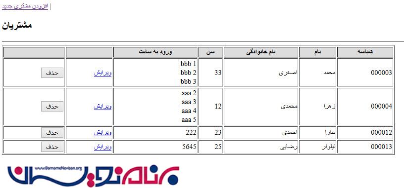 با زدن کلید f5 خروجی لیست مشتریان به صورت زیر می شود: