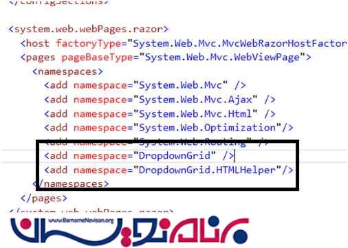 مرحله 4: ساخت پروژه و افزودن فضای نام Helper در فایل Web.config