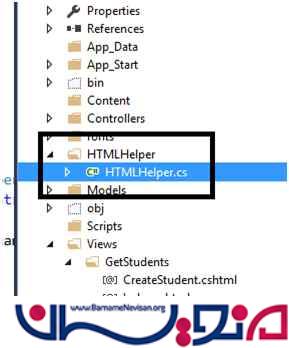 مرحله دوم: اضافه کردن پوشه Html Helper و کلاس Html Helper
