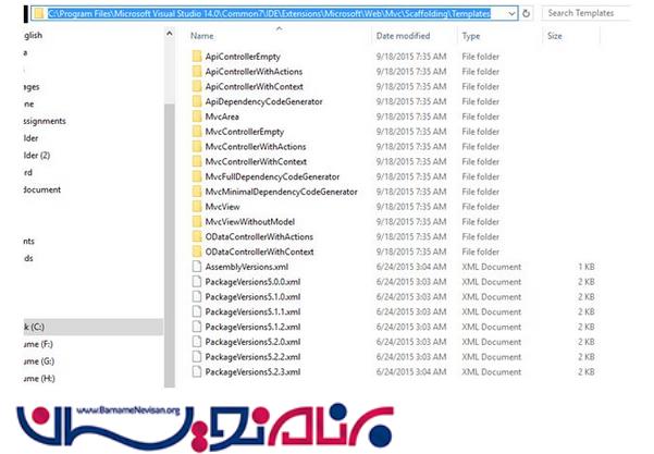 مرحله 2: یک پوشه CodeTemplate جدا در پروژه خود ایجاد کرده و هر آنچه که در پوشه template وجود دارد را در آن کپی کنید (C:\Program Files\Microsoft Visual Studio 14.0\Common7\IDE\Extensions\Microsoft\Web\Mvc\Scaffolding\Templates ). همه موارد باید در Solution شما وجود داشته باشد.