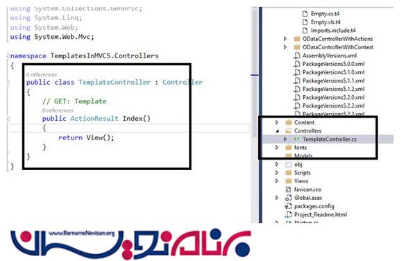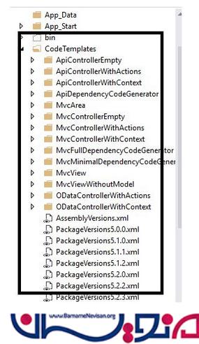 اگر نگاهی به فولدر بیاندازید می توانید template های View، Controller و حتی فایل web.config را ببینید.