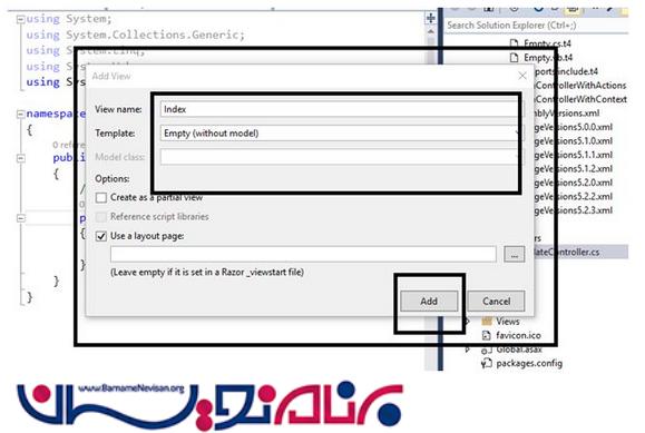 مرحله 6: یک کنترلر ایجاد کرده و یک Action نمونه اضافه می کنیم: