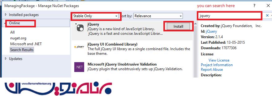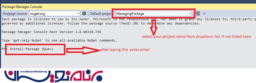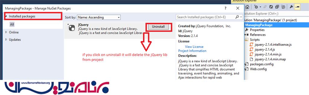 Uninstall-Package jQuery:حذف بسته ی مورد نظر