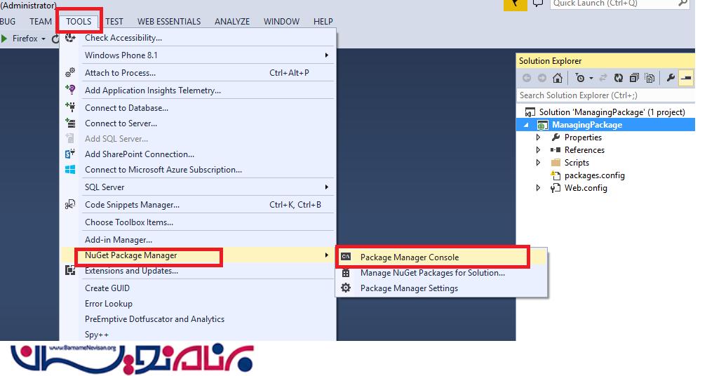 جمعه 27 آذر 1394در این مقاله قصد داریم چگونگی افزودن و ویرایش و حذف یک بسته با استفاده از Nuget انجام دهیم. Nuget مدیریت بسته برای platform توسعه ماکروسافت برای دات نت است.