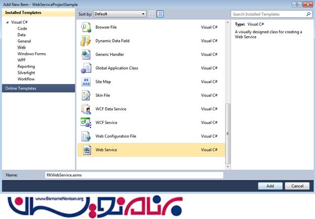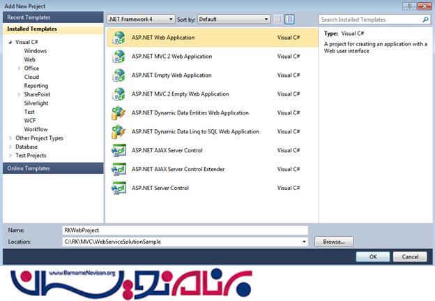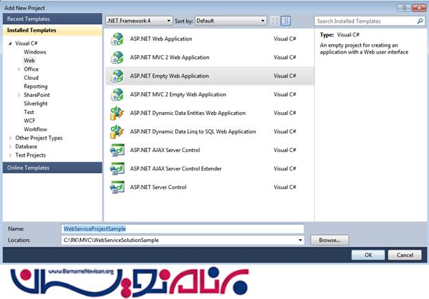 1. یک اپلیکیشن ASP.NET خالی با نام RKWebProject ایجاد کرده و نام Solution آن را WebServiceSolutionSample قرار دهید.