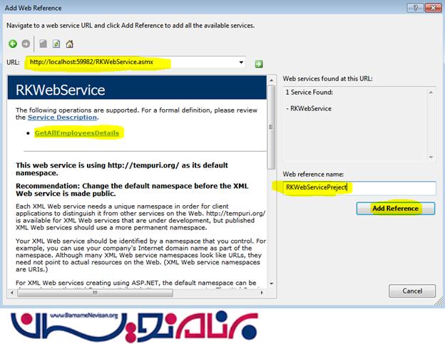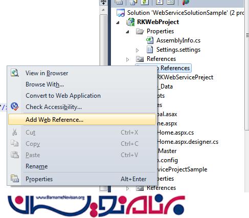 2. رفرنس وب سرویس را به این پروژه اضافه کنید.