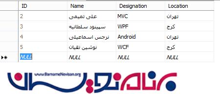 بعد از این مراحل باید یک جدول در بانک اطلاعاتی ایجاد کرده که شامل جزییات کامندان می باشد، ساختار جدول به صورت زیر است: