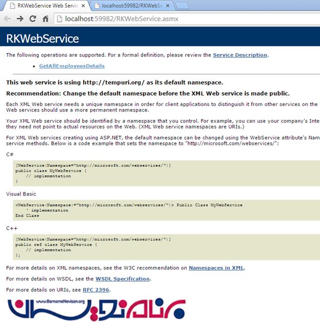 1. یک وب سرویس ASP.NET با متدی برای گرفتن تمام جزییات کارمندان(employee) ایجاد می کنیم.