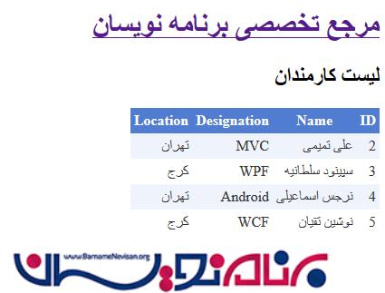 2. متد وب سرویس جزییات کارمندان را از پایگاه داده می گیرد.