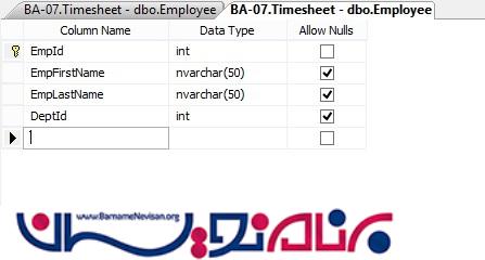 جدول Employee را در دیتابیس به صورت زیر ایجاد کنید.