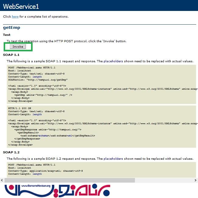 اکنون برنامه را اجرا کنید و getEmployee را invoke کنید.