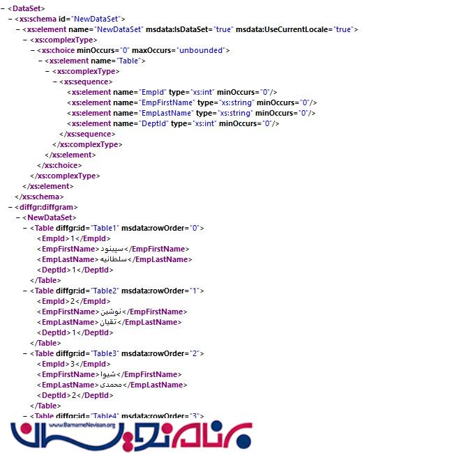 نتیجه را که شامل اطلاعات کارمندان است به صورت XML نشان می دهد.