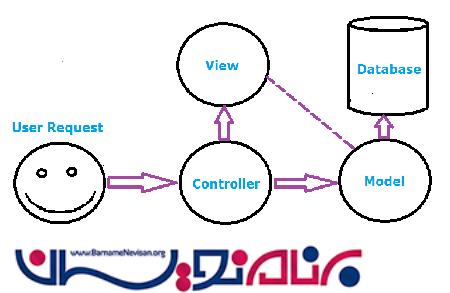 در کنترلر ارتباط بین دو بخش View و model برقرار میشود. مدل اطلاعات خود را با دیتابیس دریافت می کند و آنها را در اختیار view قرار می دهد.