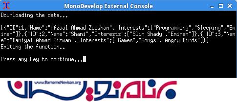 در کدی که در زیر نوشته ایم قصد داریم از یک Api اطلاعاتی را دانلود کرده و نمایش دهیم .برای این کار باید فضای نام System.Net را به برنامه اضافه کنیم .