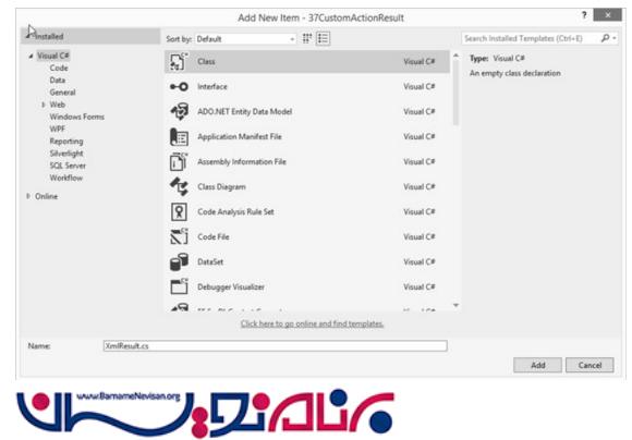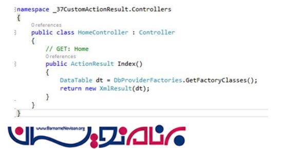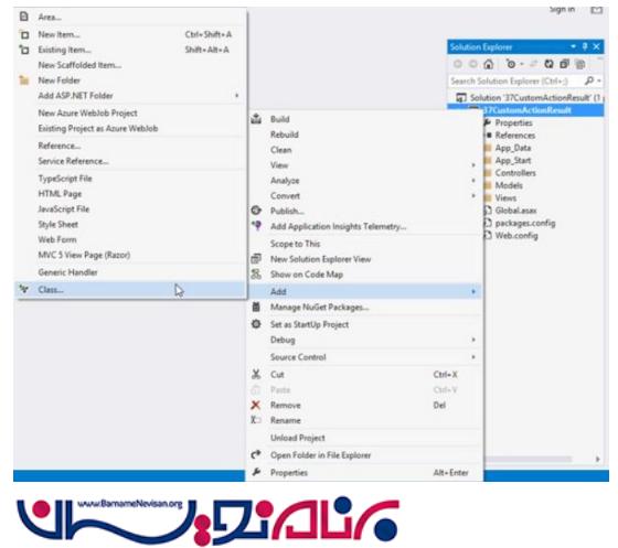حالا مراحل ایجاد یک ActionResult سفارشی را به صورت زیر توضیح می دهیم: