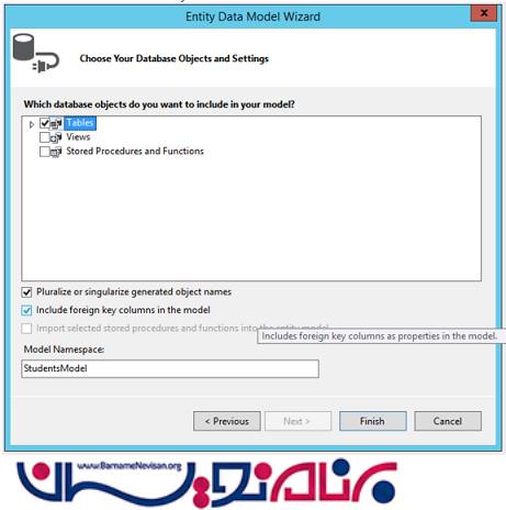 5. حالا در مرحله نهایی جداول پایگاه داده را به Context مربوط به ADO.NET Entity Data Model اضافه می کنیم.