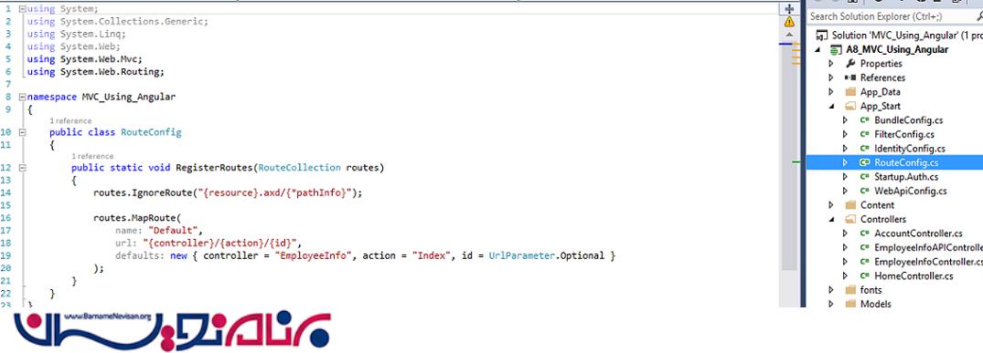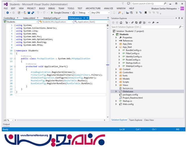 مرحله 7: مطمئن شوید که Web API routing و Bundling شما در Global.asax به صورت زیر تعریف شده باشد: