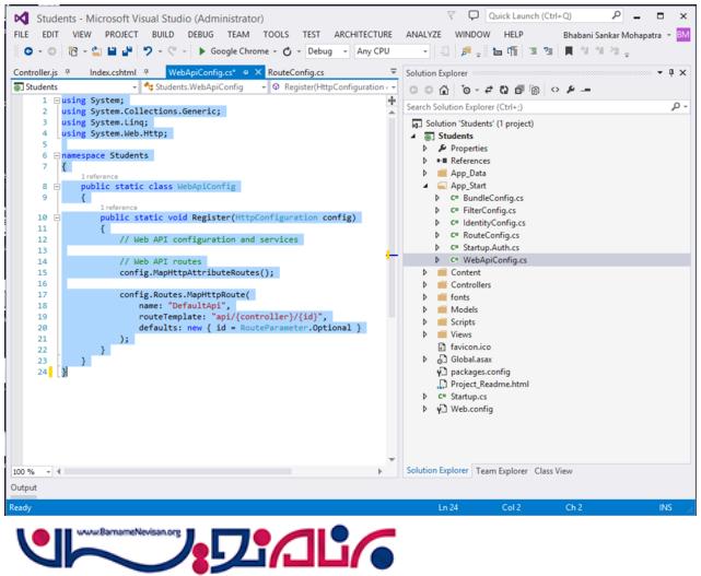 مرحله 6: WebApiConfig برای تعریف API URL Routing مانند زیر تعریف کنید:
