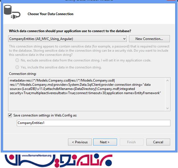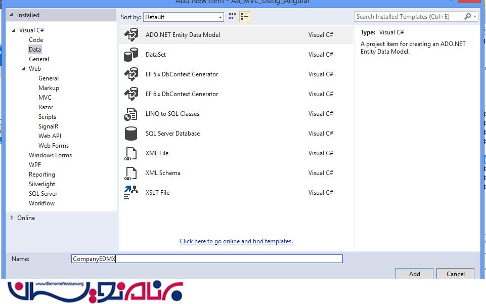 مرحله 4: حالا وقت آن است که یک ADO.NET Entity Data Model ایجاد کنیم. این یک Entity framework Database Context برای دستیابی به پایگاه داده ایجاد خواهد کرد.