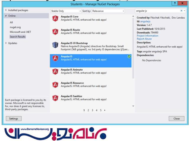 مرحله 8: AngularJS Nuget Package را به پروژه خود اضافه می کنیم: