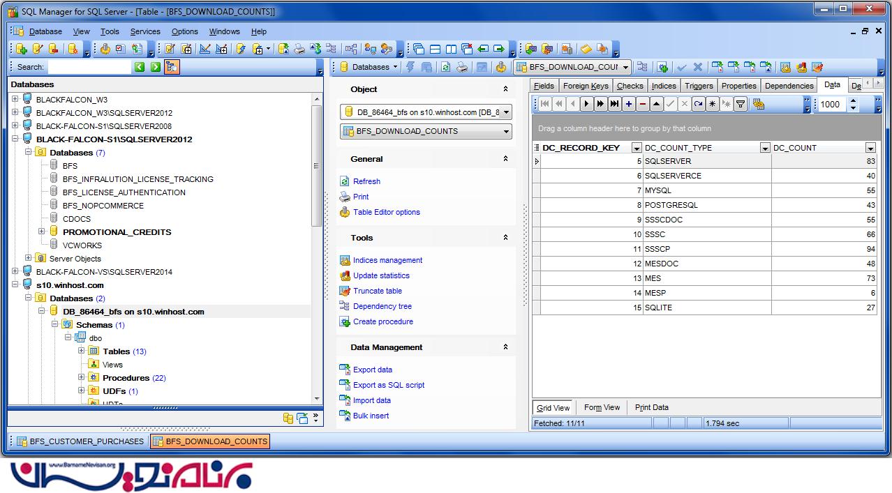 دو نوع مدیر پایگاه داده وجود دارد که مناسب این طرح می باشد و در واقع بین بسیاری از توسعه دهندگان حرفه ای محبوب است که شامل، پایگاه داده دات نت و محصولات EMS می باشد.