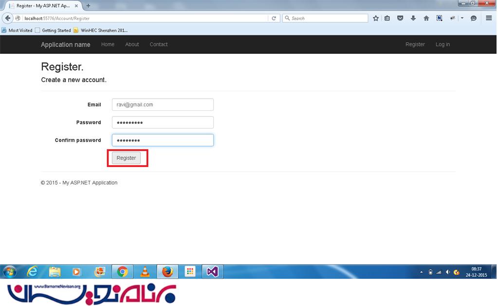 به مسیر …/Account/Register رفته و F5 را فشار دهید تا برنامه در این مسیر اجرا شود