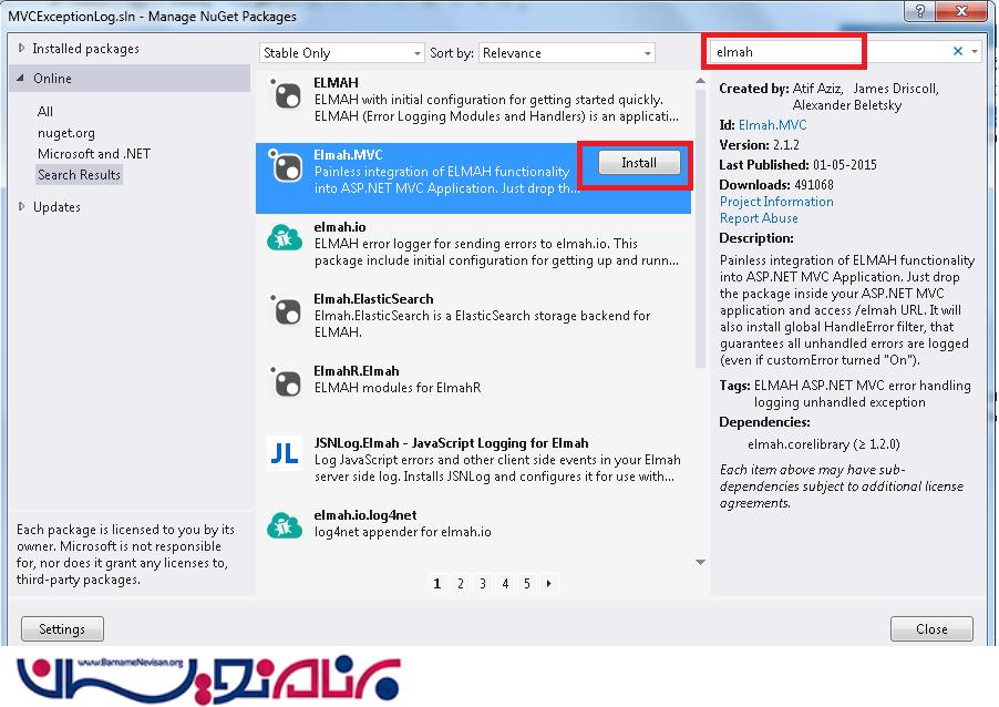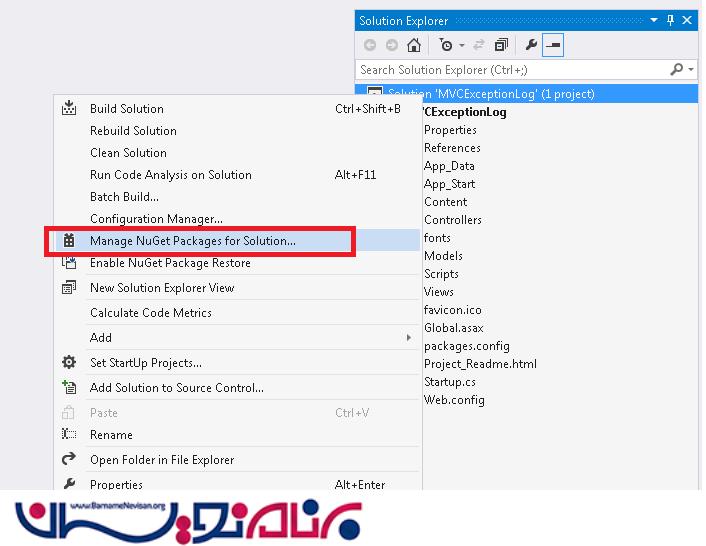 بعد از ایجاد نمونه باید از طریق nugget امکان Elmah را اضافه کنیم .