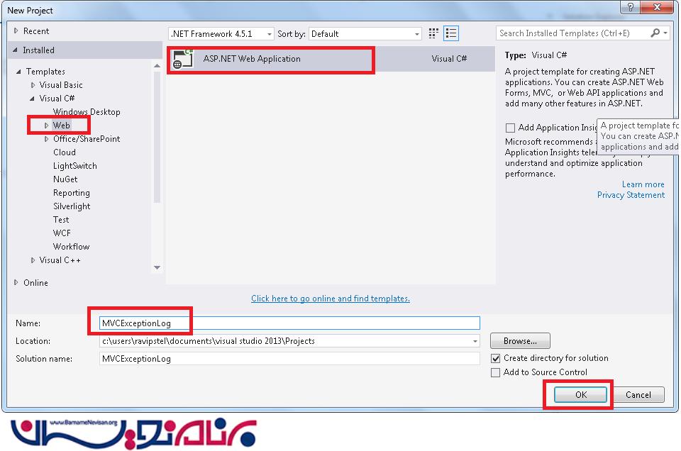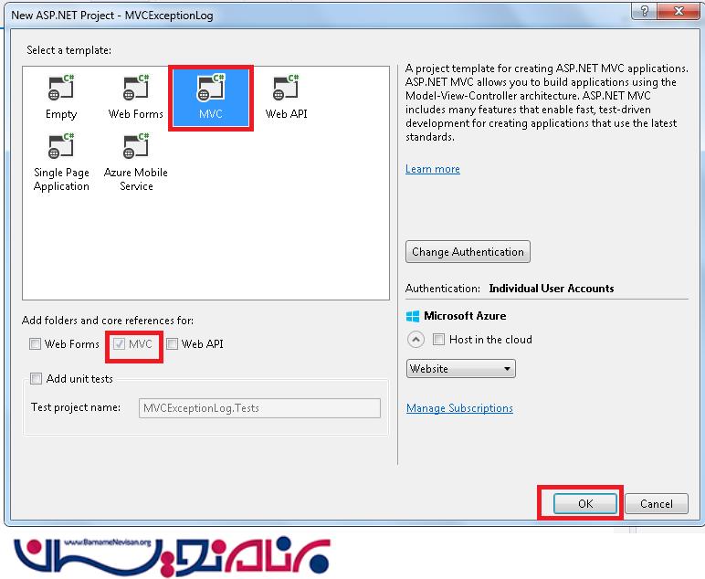 حال برای شروع کار ابتدا یک پروژه از نوع Asp.net MVC ایجاد می کنیم .