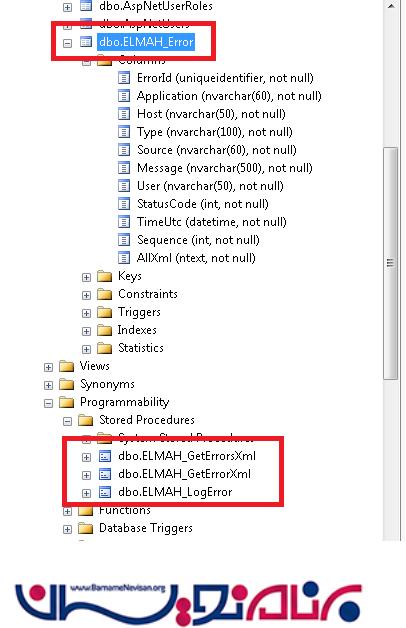 بعد از افزودن Elmah و اعمال برخی تغییرات در داخل web.congig لازم است که در دیتابیس به ساخت جدولی بپردازیم که خطاها در آن ذخیره شود .