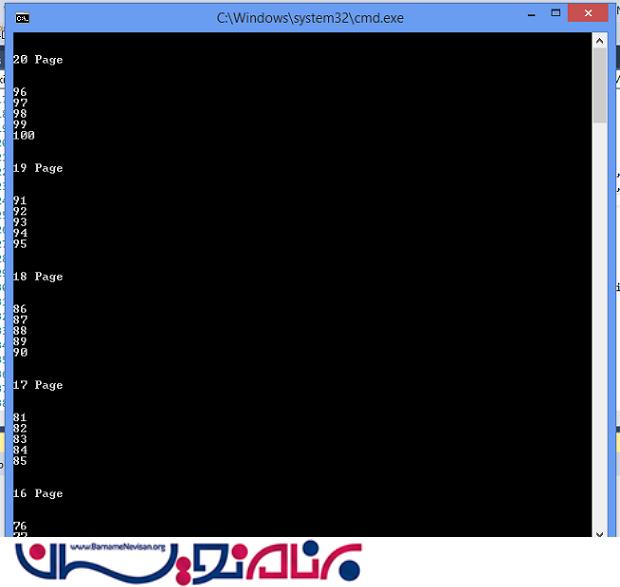 کد بالا کمک می کند که داده ها به صورت یک به یک در جهت معکوس بازیابی شوند. این بدان معناست که 20 قطعه که هرکدام شامل 5 المان باشد را چاپ می کند.