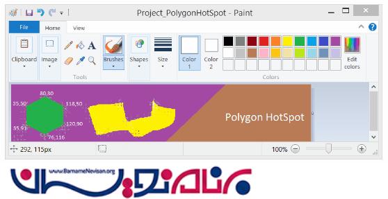 اگر شما از Expression Web استفاده می کنید، زمانی که بهینه سازی hotspot را کامل کردید می توانید مقدار مختصات دقیق را در کد منبع ببینید. اما اگر از Visual Studio ImageMap Designer استفاده کنید، اجازه نمی دهد که یک ناحیه را به صورت بصری تعریف کنید. ما می خواهیم از MS Paint برای این مقاله استفاده کنیم. علاوه بر این مشاهده خواهید کرد که چگونه می توان از MS Paint برای پیدا کردن مختصات ها استفاده کنیم.