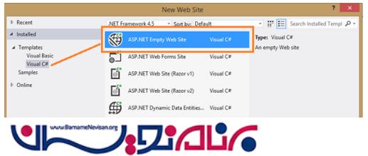 حالا یک قالب پروژه به صورت ASP.NET Empty Web Site انتخاب می کنیم.