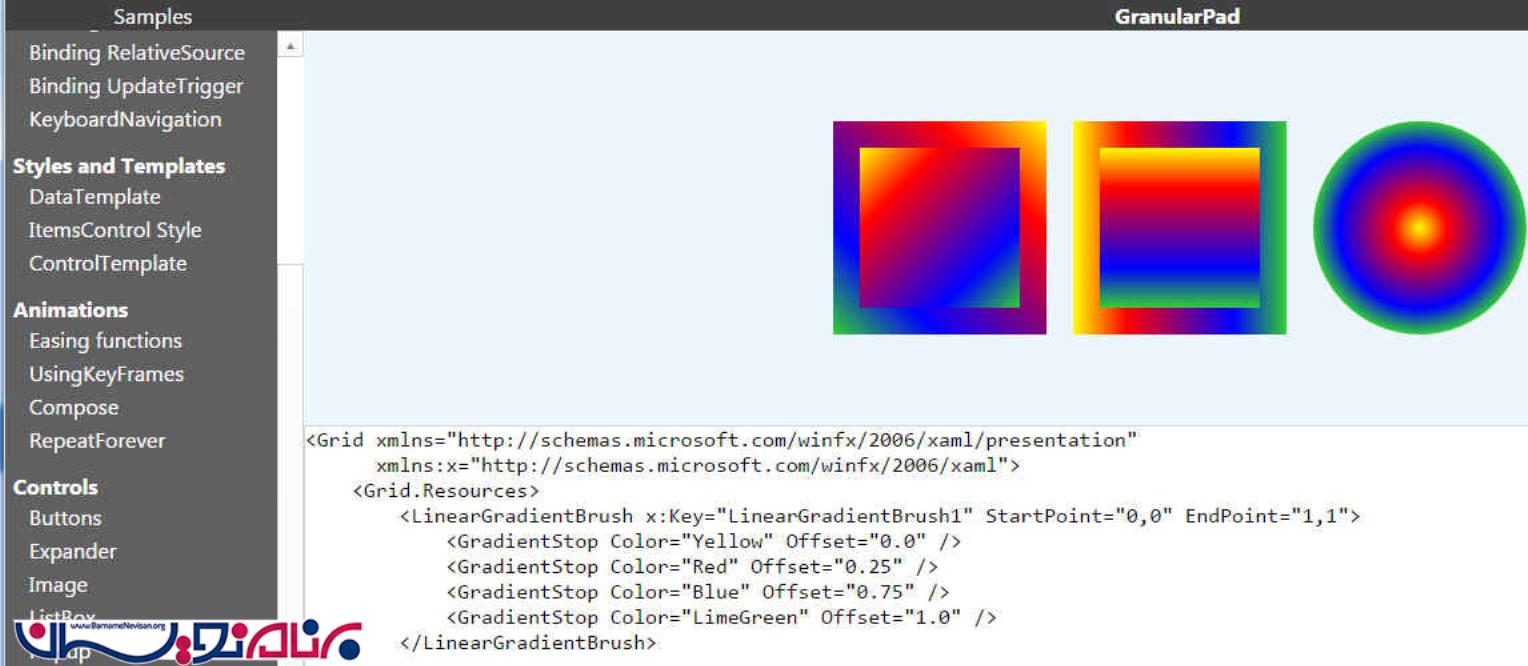 برای امتحان کردن این موضوع ، GranularPad که یک مرورگر REPL برای Granular است را ببینید. شما می توانید در قسمت XAML آن تایپ کنید و تغییراتی که اتفاق می افتد را ببینید. مواردی که در زیر در عکس می بینید، توسط Granular، پشتیبانی می شوند.