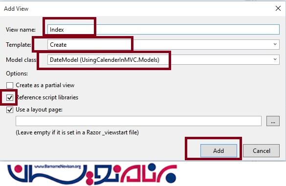 ایجاد کنترل Calender با استفاده از jQuery UI در MVC 5