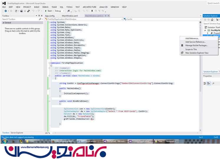 در این مقاله قصد داریم لود کردن اطلاعات درون دیتابیس به gridView در یک برنامه WPF شرح دهیم .قبل از شروع بحث کمی راجع به مقدمات صحبت می کنیم