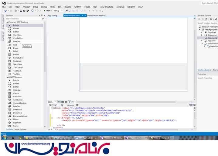 یک DataGrid بر روی فرم خود قرار دهید .اندازه آنرا می توانید در Code Behind و یا در داخل فایل Xaml تنظیم کنید .