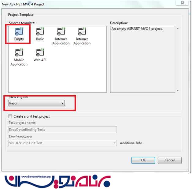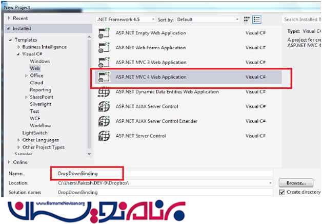 در این مقاله قصد داریم روش های مختلف اتصال داده ها به DropDownList را شرح دهیم . ابتدا یک پروژه از نوع MVC ایجاد می کنیم .