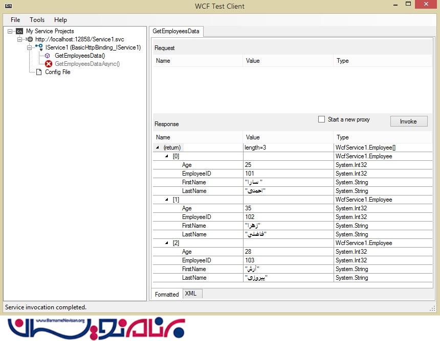 بر روی نام متد دبل کلیک کرده و سپس بر روی Invoke کلیک میکنیم.