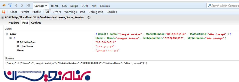 ارسال و دریافت شی از JQuery و وب سرویس ها