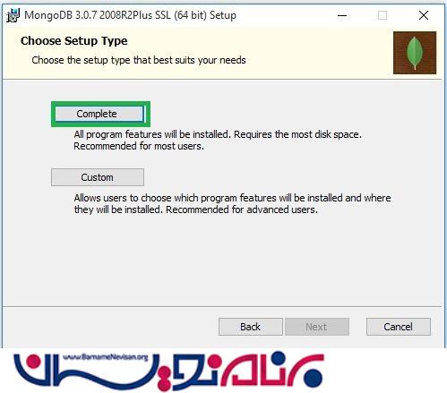 گزینه Complete را برای نصب کامل mongodb انتخاب کنید.
