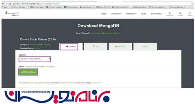 مراحل: حالا می خواهیم MongoDB 3.0.7 نسخه 64 بیتی را روی ویندوز 10 نصب کنیم.