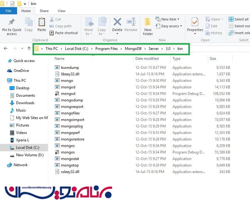 برای مثال روی مسیر C:\Program Files\MongoDB قرار دهید: