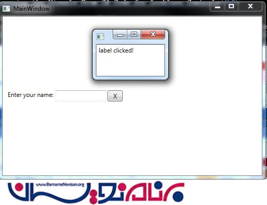 اگر پروژه را اجرا کرده وبر روی Enter your name کلیک کنید می توانی مشاهده کنید یک پنجره modal dialog شامل متن label clicked به صورت popp up ظاهر می شود:
