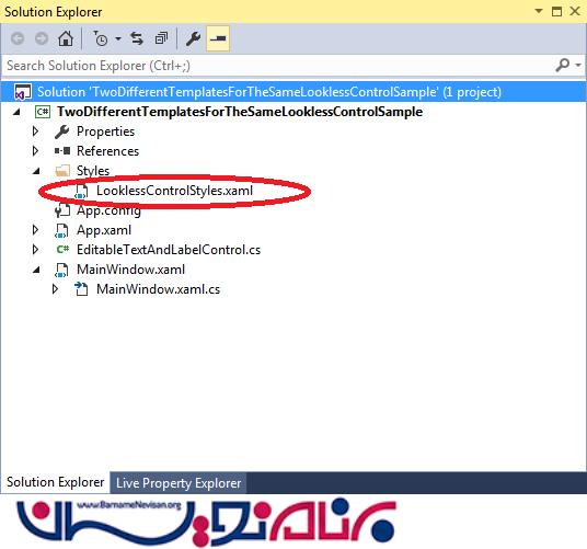 نگاهی به Template کنترل در فایل LooklessControlStyle.xaml بیاندازید. تنها چیزی که در مقایسه با مثال قبل تغییر کرده است این است که TextBlock به PART_Label تغییر اسم داده است و یک پس زمینه شفاف دارد: