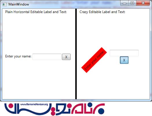 موتور تجزیه XAML در WPF متغیرهایی مرتبط با نام های کنترل ها ایجاد می کند. این متغیرها از طریق code behind (که در فایل EditableTextAndLabelUserControl.xaml.cs موجود است) در دسترس می باشد.