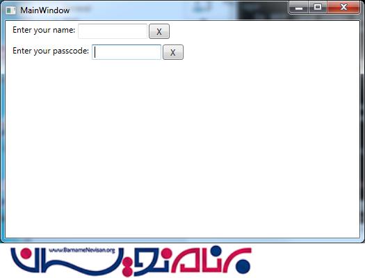 دو سطری که برای وارد کردن نام و passcode قرار داده شده است، توسط یک نمونه ساده از همان کلاس EditableTextAndLabelUserControl ارائه شده است.