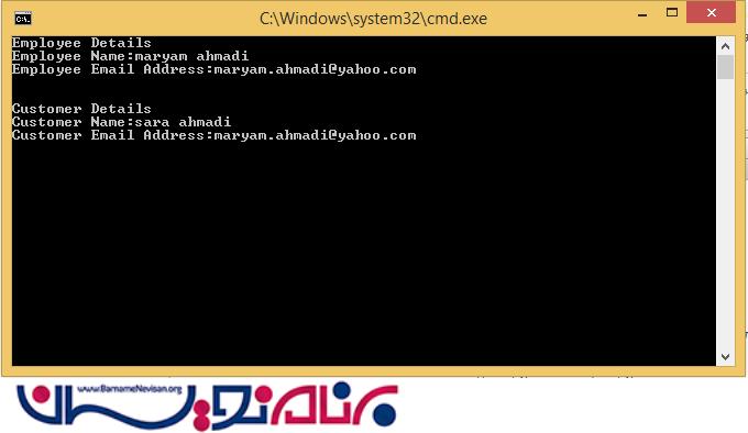 برای تست ما از یک console استفاده می کنیم که اطلاعات کارمندان را نمایش می دهد.داخل کلاس program به صورت زیر خواهد بود: